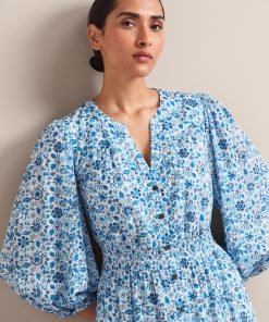 Cut from a beautifully light and drapey cotton viscose voile in two dreamy floral prints, Aspen is the ultimate throw-on-and-look-great summer dress. Machine washable, its flattering V-neckline, bracelet-length blouson sleeve and shirred waist, make it an effortlessly elegant, wear-on-repeat summer saviour.